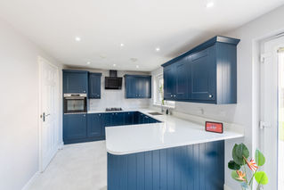 Set on a corner plot within a modern and peaceful Guardbridge development, this spacious and bright three-bedroom detached home offers comfortable family living in a desirable residential setting. From the welcoming entrance hallway, decorated in soft tones with plush carpeting, you are ushered into a bright south-facing living room. Echoing the hallway’s calm décor, this inviting space provides the perfect place to relax and unwind. To the rear, a contemporary dining kitchen opens directly to the garden, ideal for everyday living and entertaining. Designed with a modern touch, the kitchen is fitted with rich blue wall and base cabinetry complemented by sleek polished white worktops and comes complete with a range of high-spec integrated appliances including a gas hob, slanted extractor hood, and eye-level oven. A separate utility room keeps the space streamlined and provides access to the side of the home, while a guest WC and handy under-stair storage complete the ground floor. Upstairs, a carpeted staircase leads to three generously sized double bedrooms. The south-facing principal bedroom benefits from a stylish en-suite shower room, creating a private retreat. Two further well-presented bedrooms are served by a family bathroom finished in a soothing palette and fitted with a bath and wall-mounted shower, WC, washbasin, and chrome towel radiator.