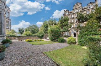 Set on the ground floor of a handsome semi-detached stone-built Victorian villa within the prestigious St Andrews Conservation Area, this exquisite two-bedroom home combines luxurious finishes with timeless style, offering an exceptional residence of rare quality. From the meticulously kept gated front garden, the front door opens into an inviting vestibule, complete with original Victorian encaustic floor tiling. A door with original stained-glass inset then leads into a spacious hallway, elegantly decorated, and carpeted in wool herringbone. To the right, a breathtaking dual-aspect living room awaits, boasting a calm colour palette and wool carpeting. Flooded with natural light, its expansive bay windows frame picturesque garden views, creating a serene setting for relaxation and entertaining. The sense of grandeur is enhanced by soaring ceilings, a picture rail, glass-fronted press, ornate wall mouldings, and an open fireplace set within a carved mantel. To the rear of the home, a bright and spacious kitchen opens directly onto the south-west-facing courtyard. Country- style cabinetry is paired with wooden worktops and a tiled splashback, while integrated appliances include a hob, oven and dishwasher. The thoughtful layout also provides space for informal dining. Returning to the hallway, the generously proportioned principal double bedroom enjoys abundant natural light from a bay window overlooking the front garden. Decorated in soft neutral tones, it offers a restful retreat, further enhanced by a luxurious en- suite shower room. Styled with high-quality porcelain tiling, the spa-inspired design features a large walk-in rainfall shower, washbasin, WC, and chrome towel radiator. The second double bedroom, positioned to the rear, continues the home’s elegant interior design, while a fully-tiled bathroom completes the accommodation. Finished to a high standard, it features a full bath with wall-mounted shower, concealed-cistern WC, washbasin and chrome towel radiator. Bathrooms have the additional benefit of underfloor heating.